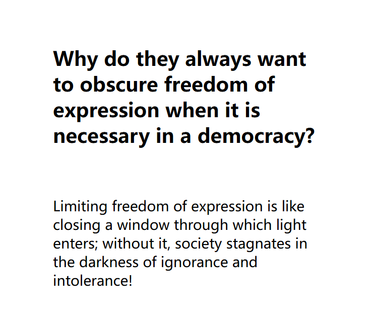 Limiting freedom of expression is like closing a window through which light enters; without it, society stagnates in the darkness of ignorance and intolerance!