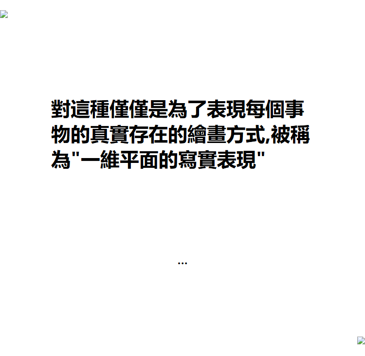 對這種僅僅是為了表現每個事物的真實存在的繪畫方式,被稱為"一維平面的寫實表現"