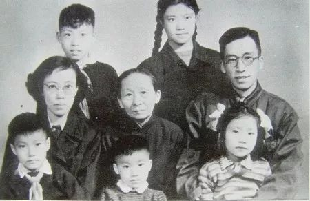 顧準全家福(左起:前排次子顧南九、幼子顧重之、幼女顧秀林,中排夫人汪璧、顧母、顧準,后排長子顧逸東、長女顧淑林)